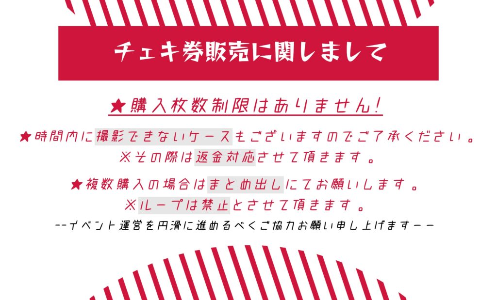 ※動画での撮影、局部撮りが発覚した場合、メディアを没収の上、ご退場頂きます。その際ご返金はございません。